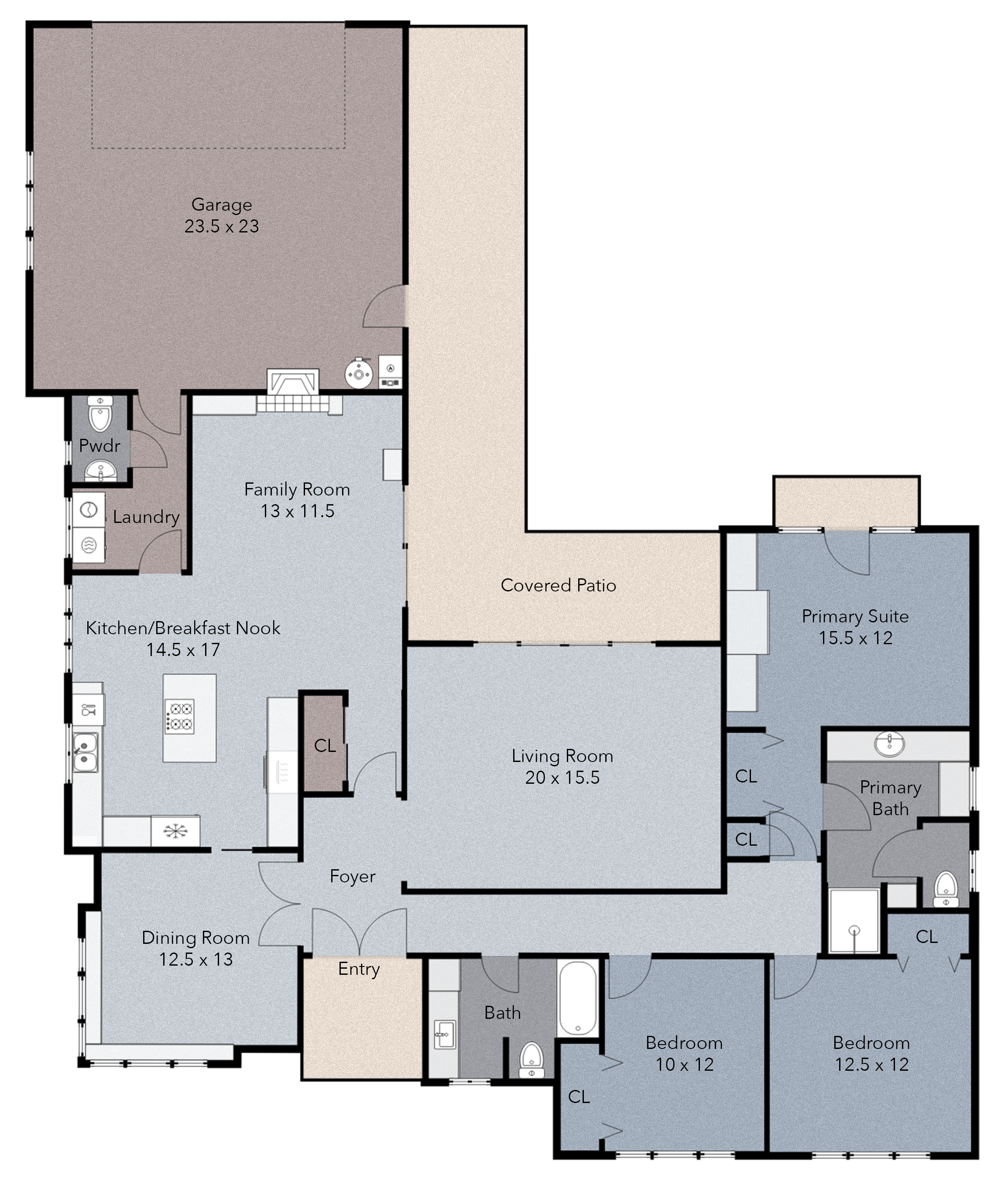 • Other features: powder room with pedestal sink; laundry room with washer and dryer; attached 2-car garage with built-in cabinets; ample off-street parking